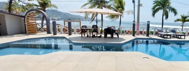 Estamos situados en la playa de La Libertad, El Salvador, un lugar ideal para disfrutar del sol y el mar.